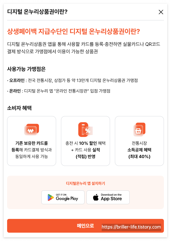 그리고 신청이 끝나고 나면 간략하게 '디지털 온누리상품권'에 대한 설명창이 나타납니다.